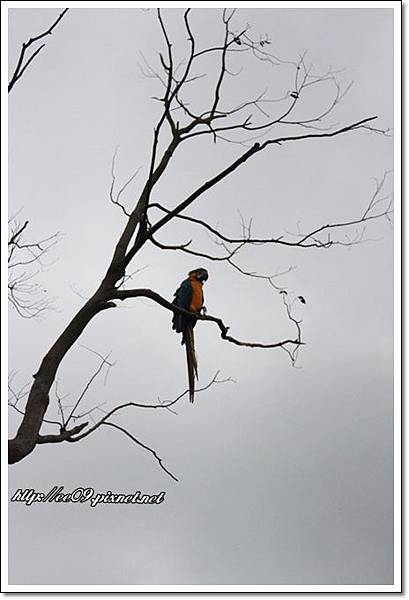抬頭一看天空, 還有隻鸚鵡駐足在枝頭.