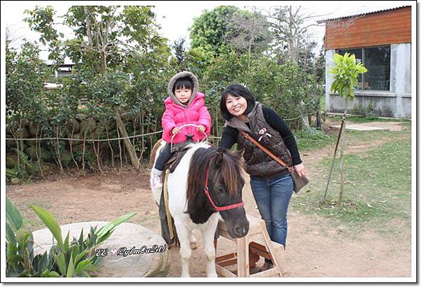 她真的有"自己"坐在上頭, 讓園內工作人員牽著馬, 繞幾圈!