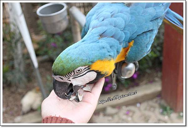 一入場就見到牠的漂亮鸚鵡, 很厲害唷. 吃飼料會自己剝殼ㄋㄟ!