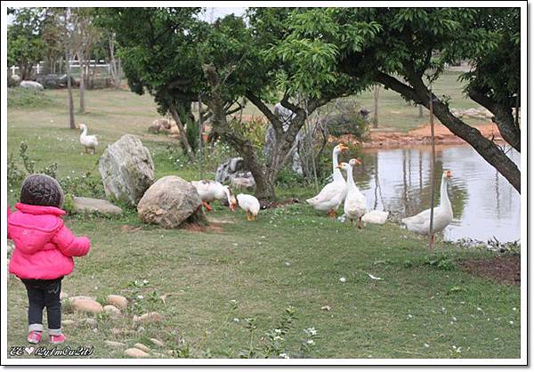 看到小白鵝, 她一直想湊過去. 還不斷地學: [ㄜ~~ ㄜ~~~]