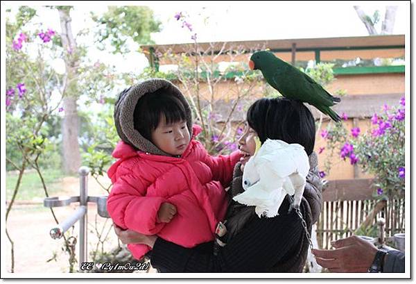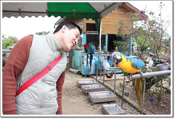 工作人員會起鬨: 幫你保管相機喔. 然後你身上就滿是五顏六色的鸚鵡了.