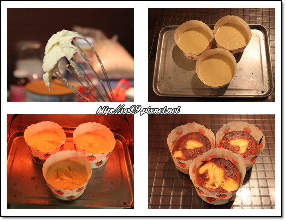 我用之前買的馬芬紙杯, 容量似乎比較大. 同樣的量, 我裝起來只有三杯.